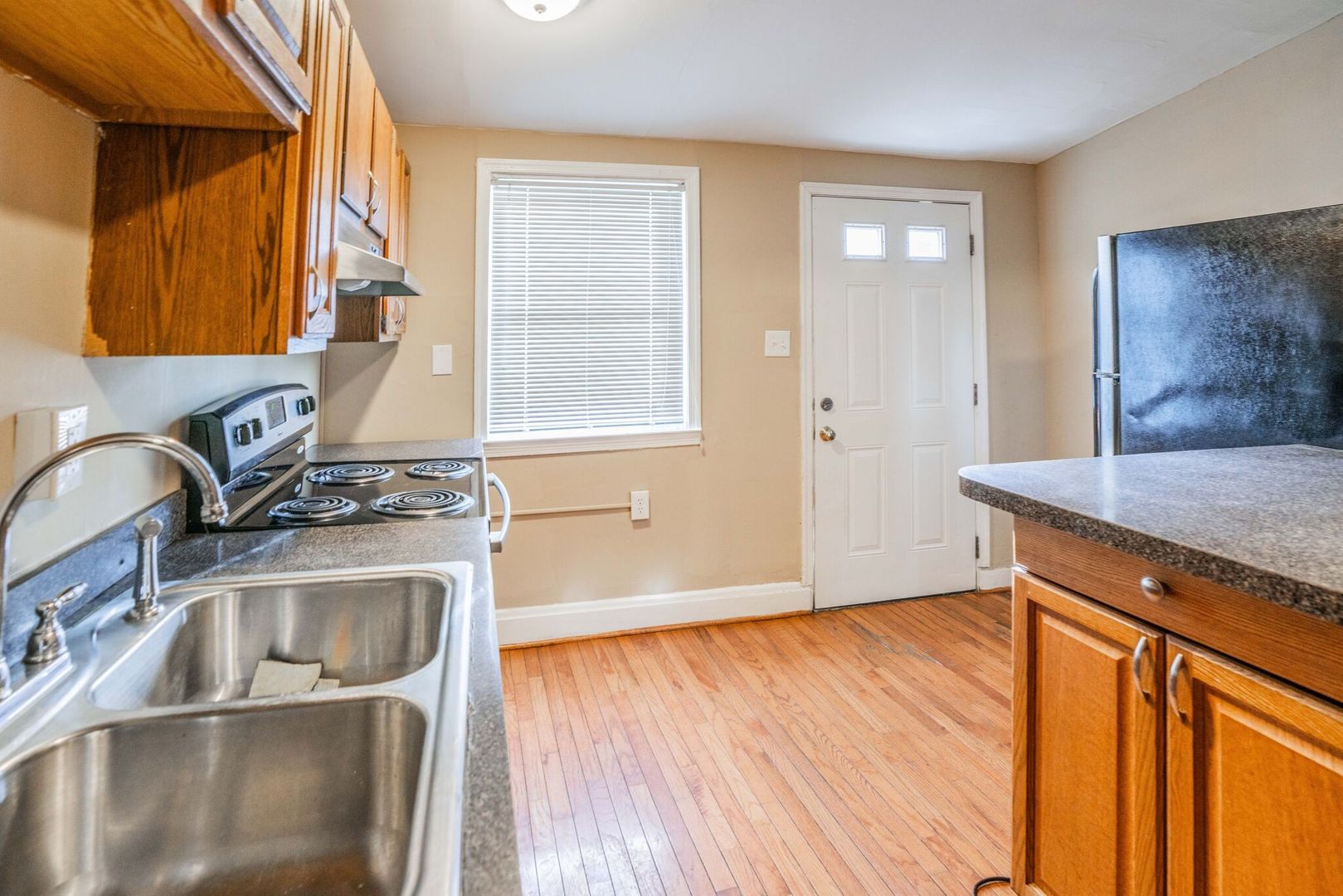 3 bed 1 bath detached home in Baltimore City ! A fully equipped kitchen with tons of counter and cabinet space, and a HUGE attached deck! Hardwood floors throughout and a washer and dryer in basement with tons of storage room. A massive master bedroom with large closet, and then 2 office like bedrooms on 2nd floor. Tons of natural light, DRIVEWAY PARKING, a huge covered front porch, deck off kitchen and large grassy yard! Pet friendly, options for low deposits, and voucher friendly!