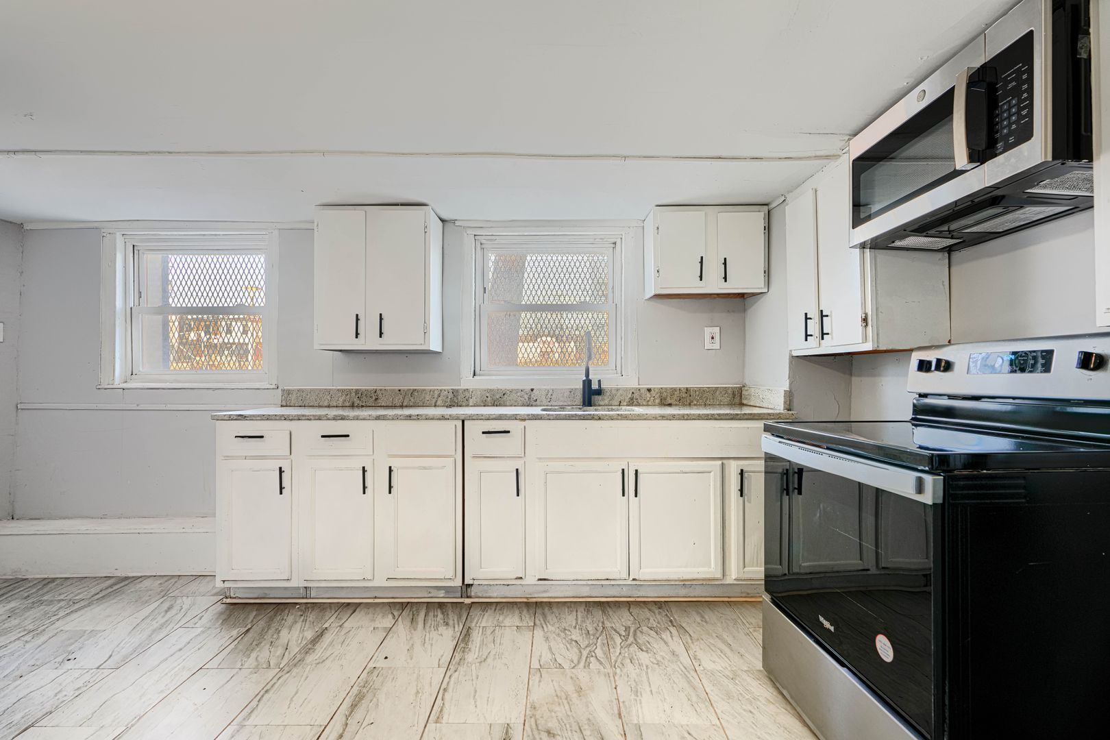 All newly updated 2 bed, 2 level, 1 bath apartment available now! This unit has central air, a large eat in kitchen with ample counter space, and plenty of natural light. Both bedrooms, full bath, and a defined living room located on 2nd FL. Washer/dryer in unit, and central AC/heat. Also a fully electric unit! Pet friendly and accepting vouchers.